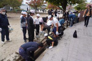 10月25日の授業参観の後に、児童と保護者の皆様で、校舎や運動場付近の側溝を掃除しました。