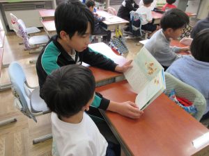 11月は、図書館まつりの期間に合わせて、1年生と6年生のペア学級でペア読書を行いました。