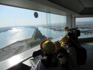 木曽三川タワーは、子どもたちが思っていたよりも遥かに大きく、「お〜!」と歓声があがりました。