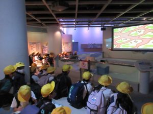 タワーを降りてからは、展示ホールで、パネル資料や映像資料からたくさんのことを学びました。水害が頻繁に起きていた頃の再現アニメからは、当時住んでいた人々の恐怖や不安な思いが、ひしひしと伝わってきました。