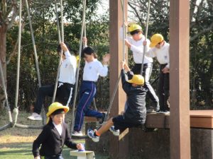 お昼ご飯を食べてからは、お楽しみのアスレチック遊具!全力で遊び、汗をかくほどでした。