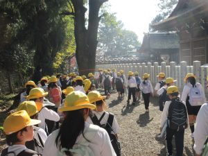 午後からは、三川分流工事に尽力した薩摩藩の平田靱負を祀った治水神社と、その横にある千本松原の見学へ。今の美しい海津市があるのは、たくさんの人の協力と犠牲があったからだということを学ぶことができました。