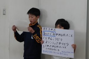 夏休み明けからの自分たちの姿を振り返り、できるようになったことや、これからも続けていきたいことを発表しました。少し緊張気味の子どもたちでしたが、堂々と発表する姿がとても素敵でした。