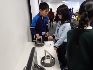重たい部品を少ない力で運べる台車や、オートマチックトランスミッションを載せて自走するロボットなど、初めて見るものがたくさんありました。