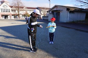 6年生が、1年生になわとびのコツを教えました。