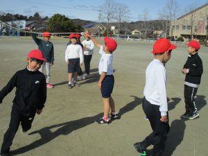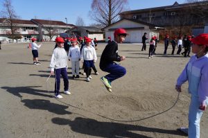 大会では、「へびからにげろ」「◯◯さん、お入んなさい」「8の字跳び」の3種目を行いました。初めての跳び方もあり、苦戦している子もいましたが、縄を回すペースを合わせながらチーム全体で声を掛け合ってチャレンジする姿が、とっても輝いていました。