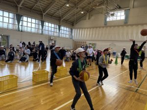 1月28日に学年レクリエーション大会で、障害物リレーを行いました。 なわとび、バスケットボール、跳び箱、マットの4種目に分かれ、技をクリアしながらコースを走り、次の走者にたすきをつなぎました。 この種目は、児童が自分たちでルールを考え、作り出したものです。休み時間を使って話し合い、準備をして、アイディアあふれる種目が出来上がりました。 どのクラスも仲間を応援し、レクリエーションを楽しむことができました。