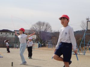 得意な子も苦手な子も、自分の決めた跳び方を休み時間に練習したり、仲間同士で教え合ったりするなど、子ども同士の関わりも多く見られました。
