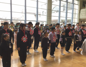 1年生は、6年生のペアの子に、メダルをプレゼントしました。